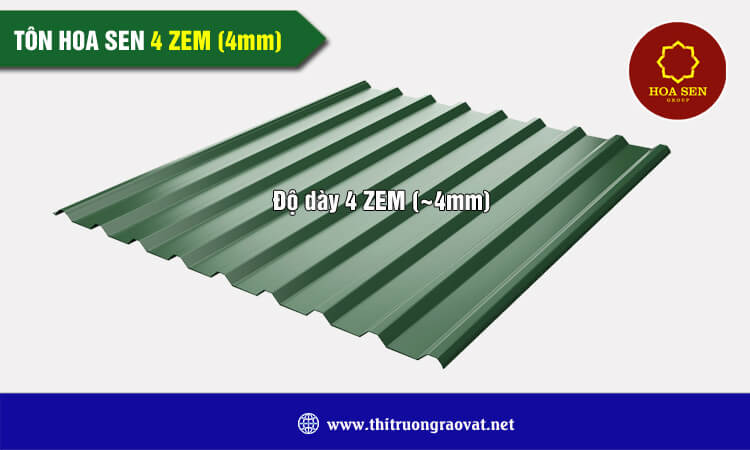 Giá tôn Hoa Sen 4 zem thường dao động từ 48.000 – 145.000 VNĐ/mét dài, tùy theo từng dòng sản phẩm, kiểu sóng, màu sắc và yêu cầu gia công cụ thể, do đó mức giá thực tế có thể chênh lệch giữa các thời điểm và đơn vị cung cấp.